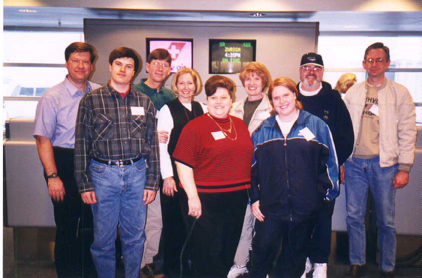 Gary Holmlund, Matthew Holmlund, Ted Holmlund, Carol Holmlund, Brenda Holmlund, Karen Keefer, Julie Keefer, Derl Keefer, and Ron Hodges at the Chicago airport on their way to Israel.